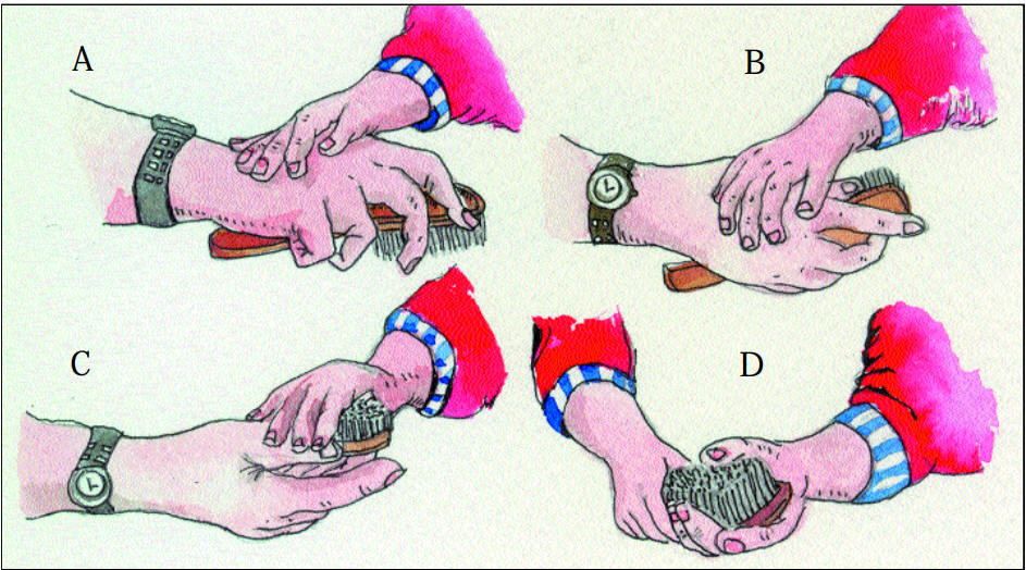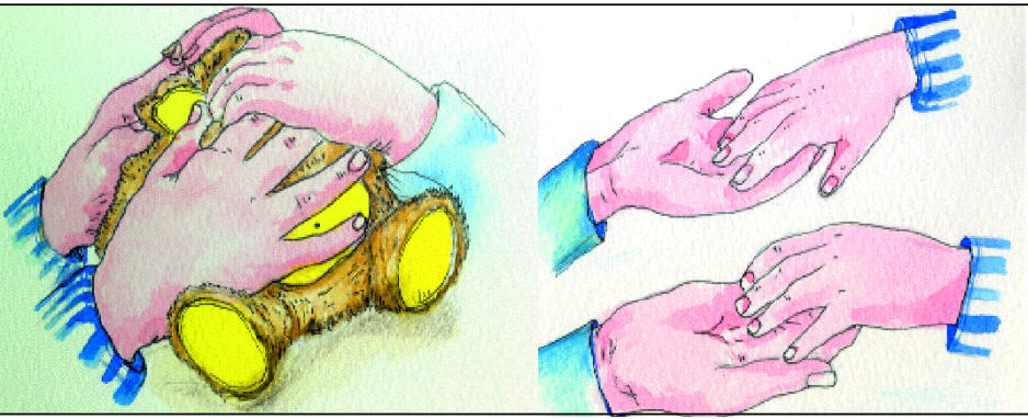 mão da criança sobre a sua. (ver a imagem acima posição - A)